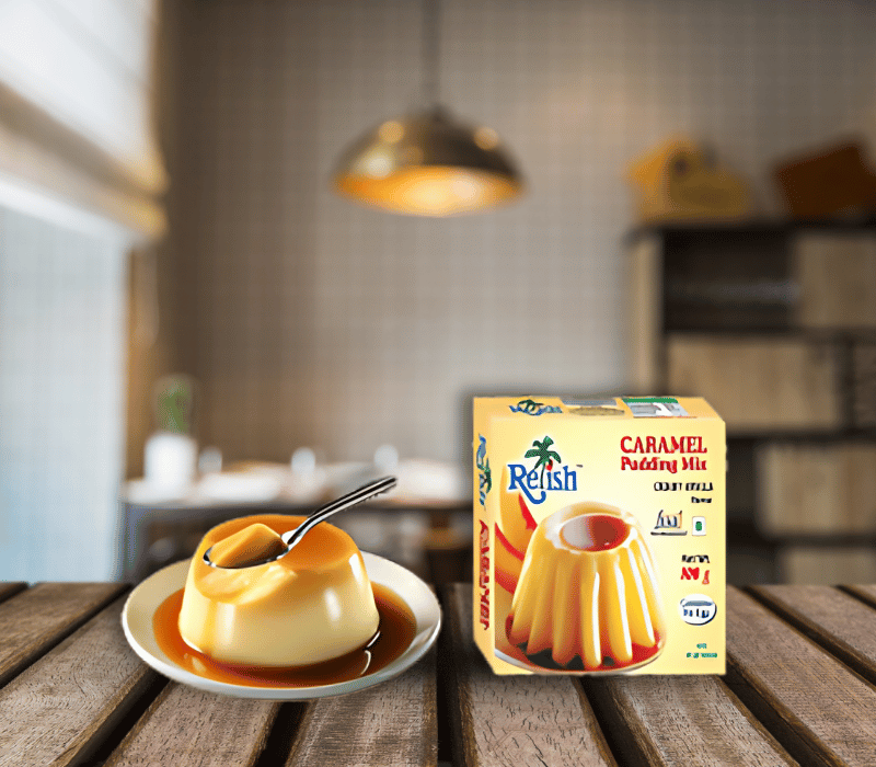 Relish Caramel Pudding Mix Creamy Vanilla brings you a quick and hassle-free way to prepare restaurant-style pudding at home. Each pack comes with a ready-to-use caramel topping and a pudding mix that blends smoothly with milk, giving you a firm, creamy, and flavorful pudding.